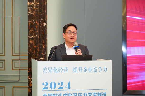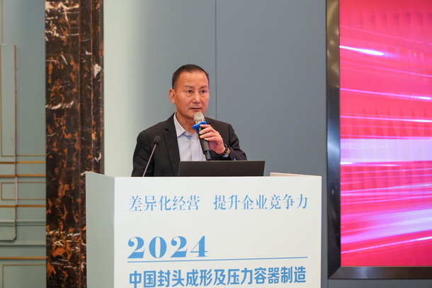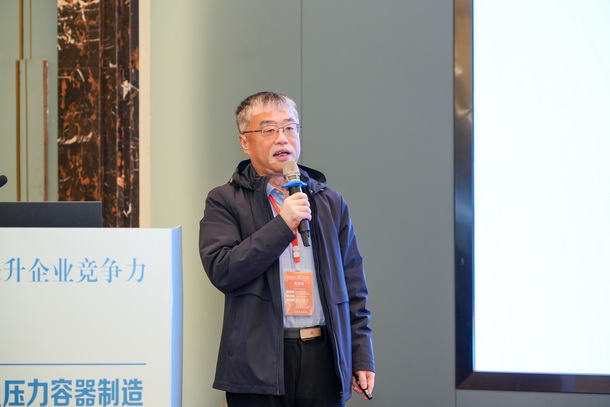 合肥通用機械研究院有限公司特材公司總工張義軍做《封頭制造業(yè)發(fā)展及標準應(yīng)用》的報告。