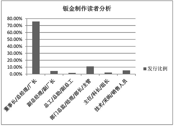 《鈑金與制作》雜志為月刊,每月10日出版,發(fā)行量為20000冊.人,采取B2B精確發(fā)行方式,以鈑金件與管型材制造商、經(jīng)銷商、用戶、服務(wù)商中設(shè)計(jì)、制造、管理、營銷等部門中、高級管理層,以及鈑金與制作裝備的采購、營銷部門的中、高級管理層為主要發(fā)行對象。