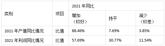 表3.1 鈑金制作裝備企業(yè)2021年產(chǎn)值和利潤同比匯總表