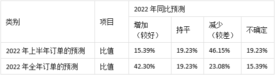 參與調(diào)研的沖壓裝備企業(yè)對2022年上半年及全年訂單預(yù)測情況見表2.3。